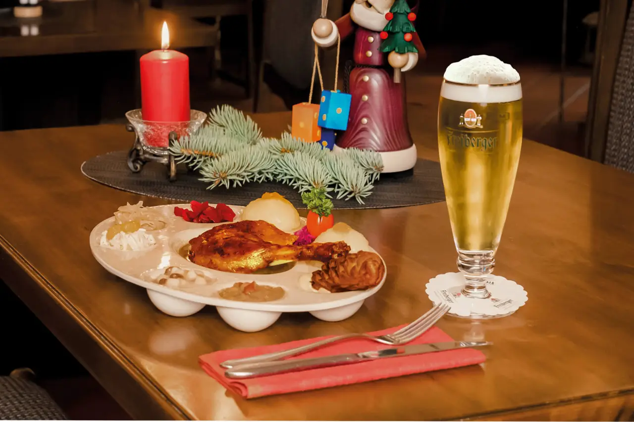 Genießen Sie unsere sächsische Gastlichkeit, neue kulinarische Erlebnisse und erfrischen Sie sich mit einem kühlen Freiberger Bier.